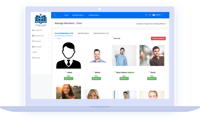Administrators can setup a central SMS account that department admins can use in communicating with members.